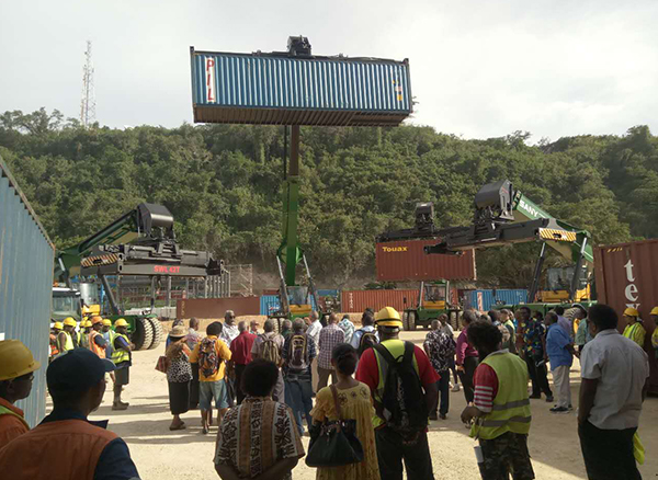 2016年10月25日,南太平洋上的瓦努阿圖港口人頭攢動,在這個經(jīng)濟不發(fā)達,人口只有26.5萬的島國,4臺三一正面吊壯觀亮相可是一件大事,電視臺前來采購,民眾也紛紛前來參觀,贊嘆不已。